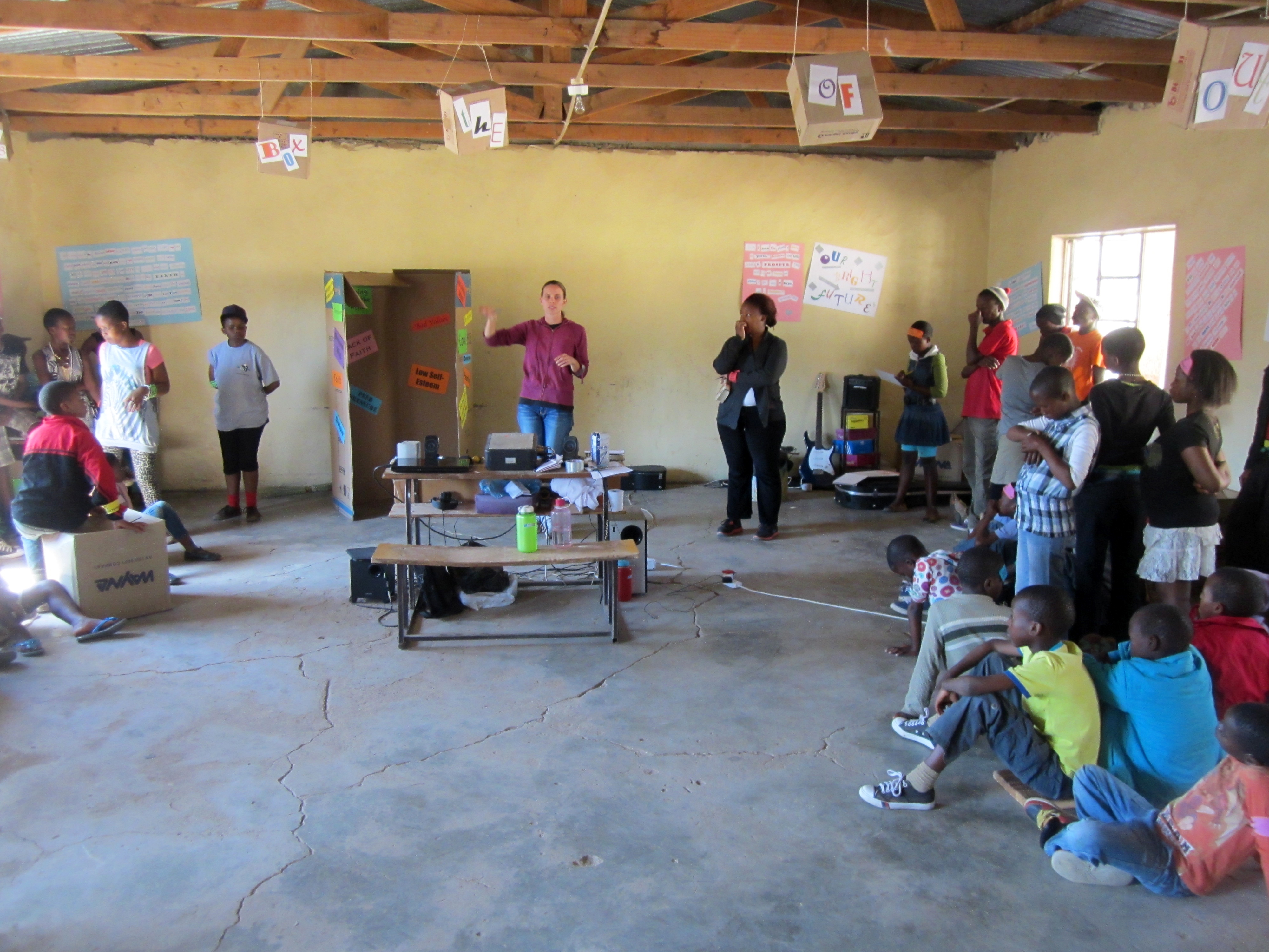 From 2-5 October we took 84 kids and youth to camp; their ages ranged from 7 to 23 years, and their experience level ranged from first time campers to those who were attending their ninth camp to date with LXP Lesotho. The theme of camp was “Out of the Box”; sometimes we live our live with self-imposed or external limitations that keep us “inside the box” instead of breaking free and living the full life Jesus intends for us. These limitations that characterize life inside the box are different for each one of us, but some examples include fear of change, submitting to peer-pressure, laziness, lack of faith, or low self-esteem. What awaits us outside the box is a life characterized by attributes like a hunger for knowledge, being courageous, perseverance, doing something new, and being yourself. Life outside the box looks different for each one of us, and that’s the point! We can’t limit our idea of “success” or how “outside the box” we are by comparing ourselves to other people; we must seek after the unique dreams and passions God has put in our hearts and realize the purpose he created us to fulfil. We were so encouraged by the one on one conversations we had with many of the young people at camp. They shared how they had been struggling with things like insecurity and finding significance in relationships with the opposite sex, but they realized that God wants to do something special in their lives and they chose to give up those hindrances to seek greater things outside the box!